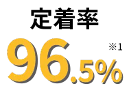私たちがご支援させて頂いた転職者様の入社後定着率は実に96.5%※。企業様、求職者様双方の要望やニーズ、希望を丁寧にヒアリングさせて頂いたからこそ実現できている数値になります。
