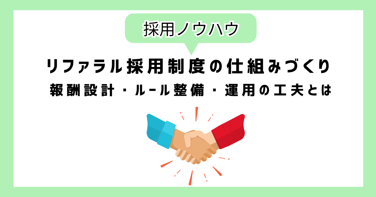 この記事では、報酬設計の基本から、紹介ルールの整備、浸透のための運用ポイントまで、リファラル制度を実際に使われる制度にするための視点をまとめました。
